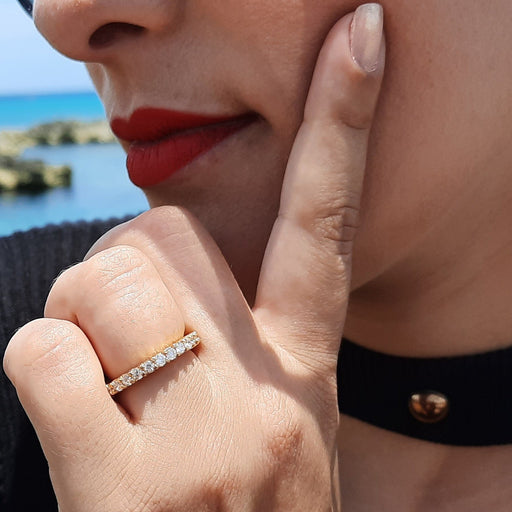Beautiful Diamond Band with round diamonds set in Gold. 14kt Gold feels and looks amazing with the sparkle of the diamonds that enhance your indiv...