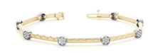 Beautiful Fancy Diamond bracelet with round diamonds set in yellow Gold. 14kt Gold feels and looks amazing with the sparkle of the diamonds that enhance your individualistic image. Pretty style that blends in all occasions and wardrobe you accompany it with. Fancy design allows you to compliment and pair other bracelets for a complete impressive look.