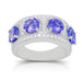 Round Tanzanites in this gorgeous ring is surrounded with round sparkling diamonds to further enhance the beauty of this jewel.